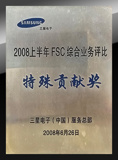 • 2008上半年FSC綜合業(yè)務(wù)評(píng)比特殊貢獻(xiàn)獎(jiǎng)